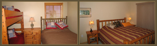 2 Bedroom/2 Bathroom Upstairs Condo Unit Our cozy, 1,149 square foot home is immaculately furnished. There is room to sleep 7, one king-size bed, bunk beds and full bed. Plus a queen sofa bed in the living room.